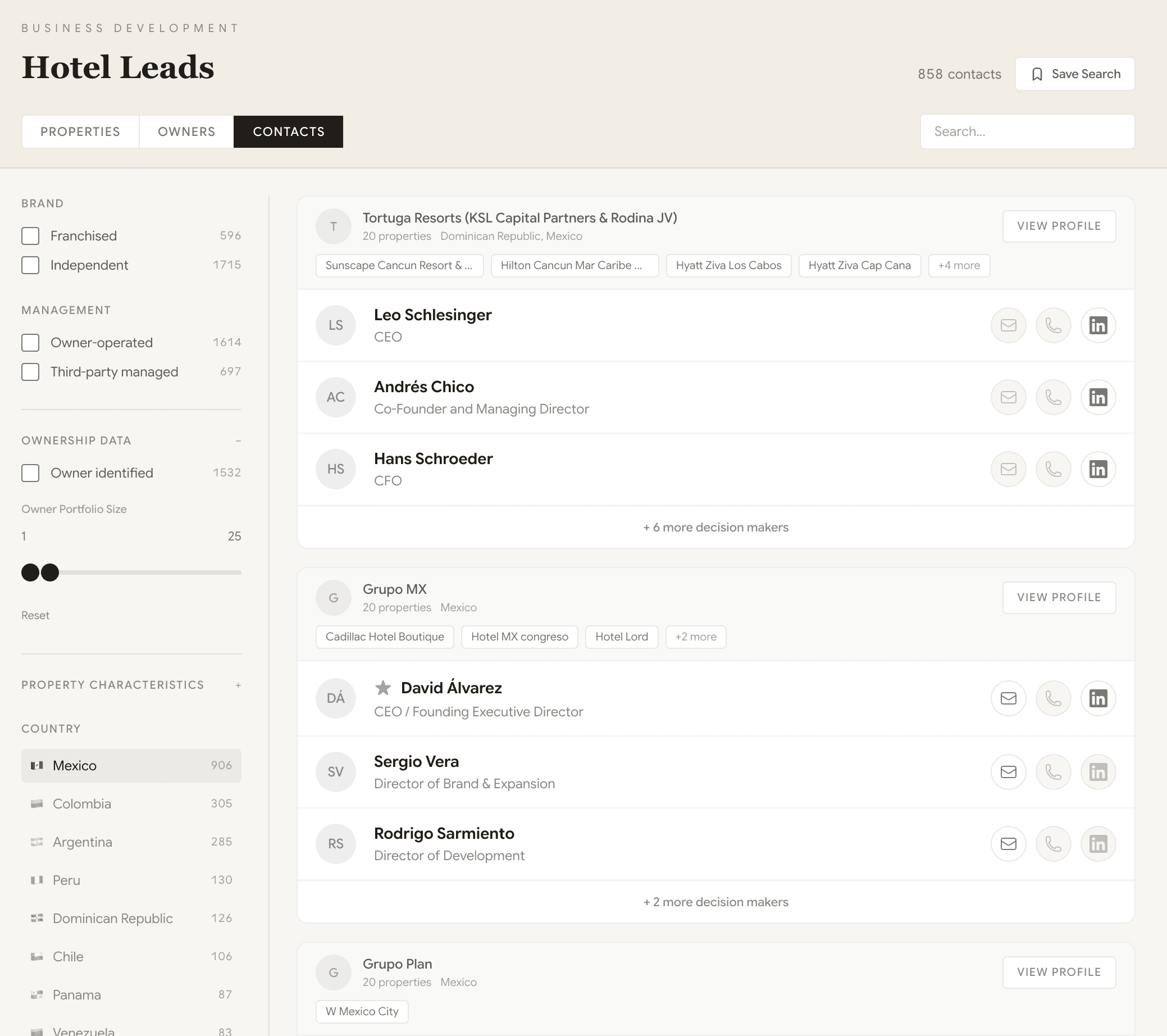 Comprehensive intelligence on over 8,000 hotels in CALA—from ownership details to the right decision-maker, and the verified contact data to reach them.
